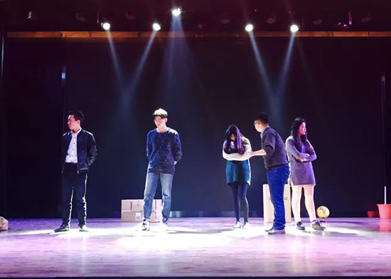 学校大学生话剧社冬季展演已连续举办了四年,冬季展演活动一般采用实验话剧剧本,选用大一、大二的同学承担剧中各主要角色,储备优秀导演、演员、剧务、场务