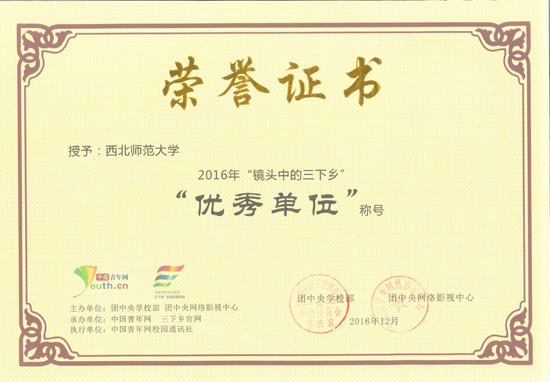 永利官网获团中央2016年“镜头中的三下乡”优秀组织奖