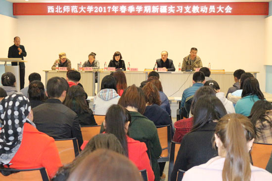 3月2日下午,学校在大学生活动中心召开2017年春季学期新疆实习支教工作动员会,总结交流支教工作经验,安排春季学期支教工作。党委宣传部、党委学生工作部、教务处等部门负责人和相关学院副院长和2017年春季学期全体实习支教指导教师及学生240余人参会。