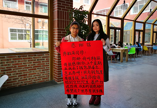 “这件事让我感受到中国同学的朴实友好,我希望多多与他们交朋友。我特别喜欢这所学校,也特别喜爱这个国家。”杨丽对记者说。