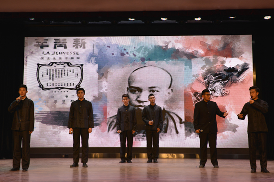 永利官网学生记者团广播站的同学们用多种形式为大家朗诵了《四月的纪念》《永生的和平鸽》《青春之歌》《见字如面》等诗文,表演了电影《冰雪奇缘》片段配音秀,演出在许峥等6位同学慷慨激昂的朗诵《少年中国说》中落下帷幕。