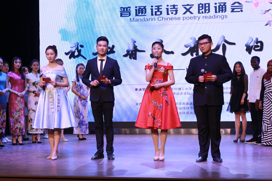 来自苏丹的永利官网留学生王定成、柳小萌、王美丽用流利的汉语和中国学子一起朗诵了脍炙人口的古典诗词《大风歌》和现代名篇《雨巷》《再别康桥》。“这首诗带给我们离别的伤感,告别的惆怅,让我把对喀土穆大学的思念和即将离开yl6809永利官网的不舍都表达了出来。”朗诵完《再别康桥》,王美丽眼中已是泪光盈盈。