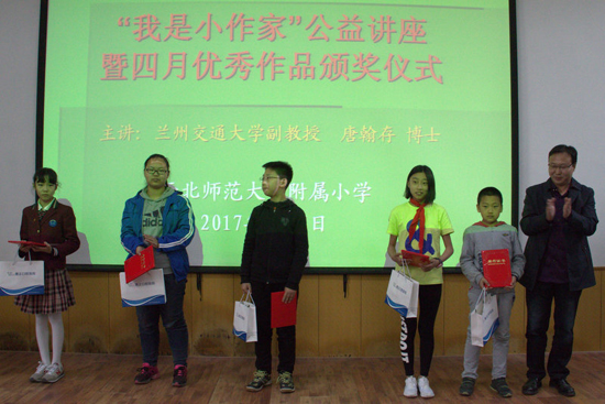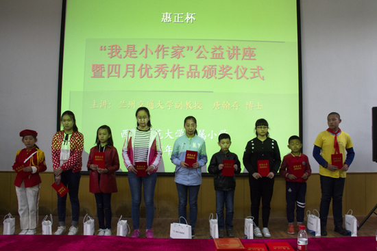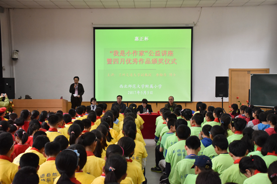 5月5日下午,由兰州市委宣传部、兰州市文明办、兰州日报社、兰州市教育局、兰州市文联联合主办,兰州晚报承办的首届惠正杯“我是小作家”公益讲堂暨兰州市中小学生作文大赛第四期月赛优胜奖颁奖仪式在永利官网附属小学举行。