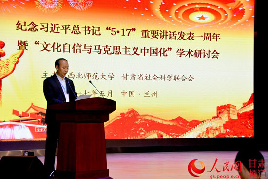 在研讨会上,国内社会理论界的专家及甘肃省哲学社会科学界的专家学者围绕文化自信与马克思主义中国化这一重大理论命题,就推动构建中国特色哲学社会科学、巩固马克思主义指导地位、促进甘肃省社科理论工作繁荣发展进行了深入的交流研讨。