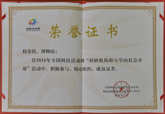 近日,科技部全国科技活动周办公室的表彰了2016年全国科技活动周“科研机构和大学向社会开放”活动优秀单位。