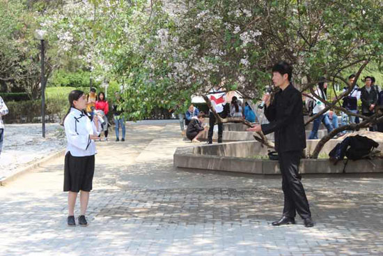 弹一首曲,跳一段舞,为最爱的人读一首诗,和同学们来一段“飞花令”……,各学院团学组织以专业特色为依托,在旧文科楼绿地广场、校本部中心广场、新校区学生广场、学生发展中心、大学生艺术教育中心等户外公共空间开展了“为你读诗”诗歌沙龙系列活动,全校万余名学子参与其中,一起在花香下以诗会友,诵读经典。