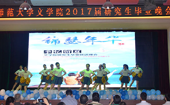 近日,文学院举办“锦瑟年华,季忆留夏” 2017届研究生毕业晚会。副校长田澍、李朝东,赵逵夫教授和党委学生工作部、团委、社科处负责人及文学院师生300余人观看了晚会。