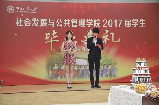 6月16日上午,社会发展与公共管理学院在专家楼报告厅举办毕业生冷餐会,师生一同品尝精心准备的各式餐点,表演精彩节目,欢送2017届本科生学生。