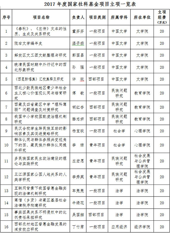 近日,2017年度国家社科基金项目评审结果公布,永利官网获准26项。其中,一般项目16项,青年项目3项,西部项目7项。获准项目居全省高校立项单位之首,创永利官网历史最好成绩。