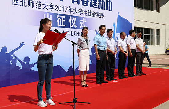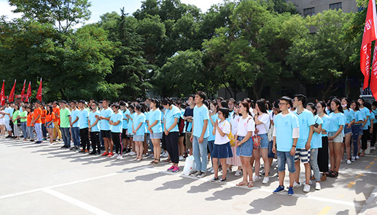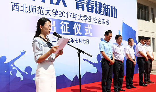 7月7日上午,学校举行“喜迎十九大·青春建新功”2017年大学生社会实践出征仪式。副校长张生勇和党委学生工作部全体干部、各学院党委副书记、实践团队指导教师代表、辅导员、社会实践队员参加出征仪式。