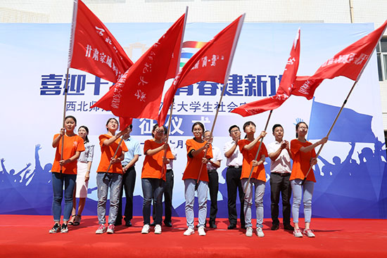 张生勇宣布永利官网2017年大学生社会实践团队出征,并为国家级、省级重点团队授旗。