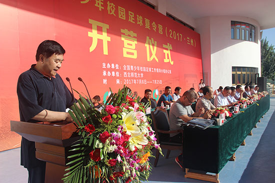 7月9日,2017年全国青少年校园足球夏令营(第四营区)在西北师大开营,来自甘肃、青海、新疆及新疆生产建设兵团的18支代表队共200余人参加夏令营活动。
