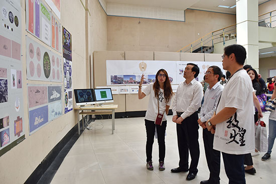 作品展展出两岸六所学校学生动画设计、游戏设计、品牌设计、文创产品设计、文具设计、丝织品设计、公仔设计、影像摄影360全视角、指甲化妆设计等七组作品。同时,两岸学生分为四组,分别介绍了作品创作灵感、内容、创意等,与会师生围绕作品创作,进行了交流。