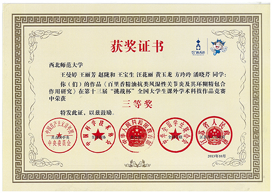 五年来,生命科学学院学院科研项目和经费稳步增长,累计获得国家科技支撑计划项目、中央与地方共建项目、国家自然科学基金、教育部项目等各类纵、横向项目100余项,其中,获国家自然科学基金38项,省部级及其他各类项目70余项,累计科研经费达3600多万元;发表论文500余篇,其中SCI论文近100篇;获甘肃省科技进步奖2项、自然科学奖1项、专利奖1项,获国家发明专利28项。学院积极组织和参加国内外学术交流,共有70余人次参加了各类学术会议,举办国内外专家学术报告会100余场。
