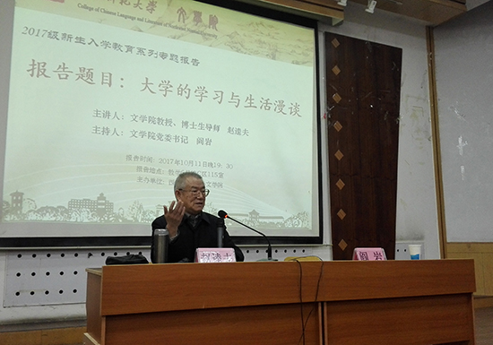 10月11日,赵逵夫教授为文学院2017级全体本科生作了题为《大学的学习与生活漫谈》的专题报告。