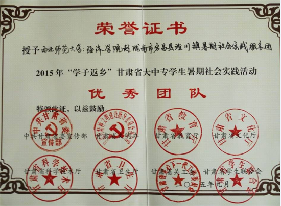 ——高度重视实践育人,创新社会实践渠道。大学生社会实践活动是大学生思想政治教育工作的有效途径,经济学院历来十分重视大学生社会实践和志愿服务工作,先后投入8万余元支持大学生社会实践和志愿服务工作。精心组织了10余支社会实践团队开展以义务支教、社会调研、政策宣讲、爱心捐赠、就业见习等内容的社会实践和志愿服务活动。累计参加教师16人、学生500余人次,完成各类调查问卷660余份,走访1000余人次,参与公益活动60余场次,服务社会群体600余人。五年来,2人获得省级社会实践指导教师,6人获得省级社会实践先进个人,37人获得校级社会实践先进个人。连续五年获得校级大学生暑期社会实践动优秀组织单位和社会实践优秀团队称号,2014、2015年分别获甘肃省大中专学生志愿者暑期文化社会实践活动优秀团队称号。