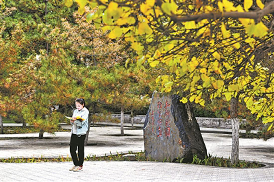 黄叶漫卷,松柏苍翠,浓浓的秋色浸染陇上毓苑。守一缕墨香,捧一卷诗书,朗朗书声轻轻敲醒西北师大的每一个晨曦。