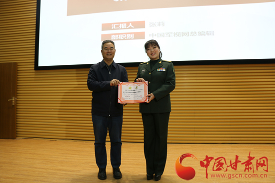 11月17日,中央电视台军事频道著名主持人张莉来到yl6809永利官网进行学术交流活动,在传媒学院“传媒六艺”大讲堂为广大莘莘学子带来了一场题为《我亲历,我见证:新时期中国军事传播的发展》精彩的学术报告。学术报告会上,yl6809永利官网党委副书记刘玉泉为张莉颁发了艺术硕士(广播电视)专业学位研究生指导教师聘书。