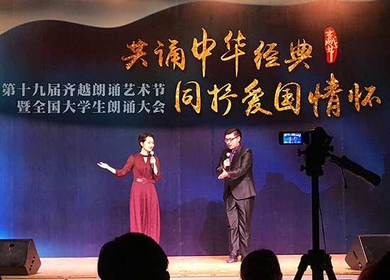 11月18日晚,由教育部语言文字应用管理司、中国传媒大学主办,中国传媒大学播音主持艺术学院承办的“第十九届齐越朗诵艺术节暨全国大学生朗诵大会”展演在中国传媒大学举办。