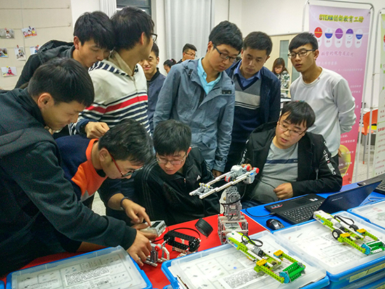 2017年9月,永利官网创新创业学院STEAM创新教育工坊面向全校师生开展STEAM教育理念宣讲并选拔参训学生,最终选拔了以物理与电子工程学院、教育学院、计算机科学与工程学院、数学与统计学院、美术学院、教育技术学院等学院70余名本科生和研究生参加首期《STEAM教育理论与实践》课程培训。在为期十周的培训时间内,参训学生接受了系统的STEAM教育理念培训,具体开展小夜灯、流水灯、智能汽车和乐高EV3机器人等STEAM教学实践活动。