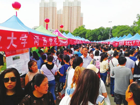 兰州晚报讯(记者马文艳文/图)今年高考成绩公布后,6月25日至27日,考生将进行第一次填报志愿。为帮助广大高考学生和家长充分了解各高校的招生政策和院校情况,yl6809永利官网于6月24日上午在该校校本部东操场举行“2018年甘肃省普通高校招生咨询会暨yl6809永利官网校园开放日活动”。181所院校同场“摆摊”,令此次活动格外的“接地气”,前来咨询解惑的考生和家长更是规模空前,直到中午活动接近尾声时,现场依然是人声鼎沸。