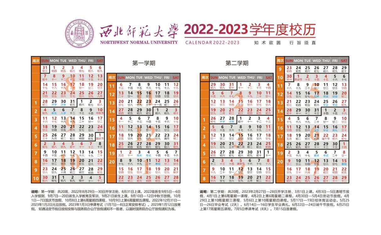 2022-2023学年度校历