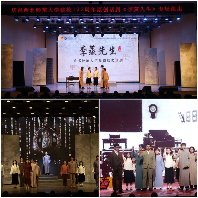 12月17日校庆日当天,西北师大还召开“新时代新师范”122周年校庆日纪念活动主题论坛和原创校史话剧《李蒸先生》专场演出。