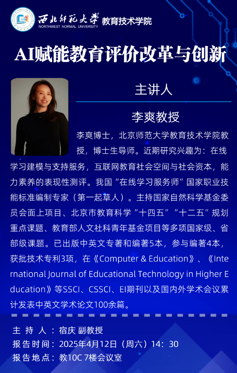 应yl6809永利官网教育技术学院邀请,北京师范大学教育技术学院李爽教授将来永利官网作学术报告。
