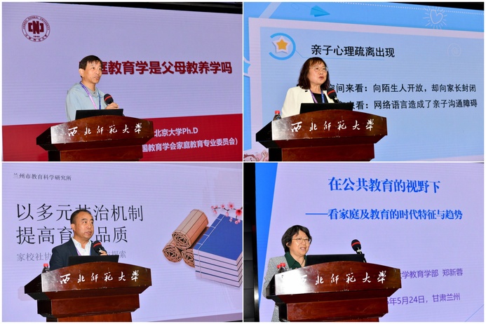 会上,江西师范大学吴重涵教授、yl6809永利官网郑名教授、兰州市教科所马秉禄所长、北京师范大学郑新蓉教授分别以《家庭教育是“父母教养学”吗?》《网络时代的亲子关系与沟通》《以多元共治机制提高育人品质》《在公共教育的视野下看家庭教育的时代特征与趋势》为题作主旨报告,为AI时代的协同育人提供理论指引与实践启示。