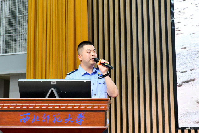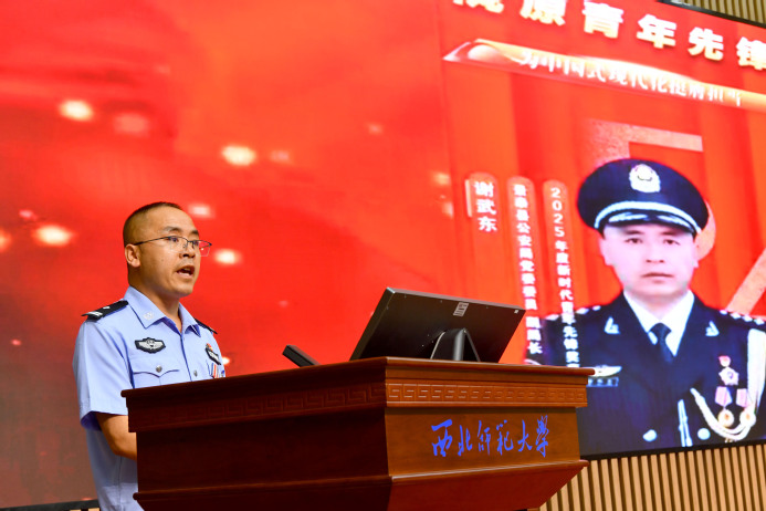 “2025年度新时代青年先锋奖”获得者甘肃省白银市景泰县公安局党委委员、副局长谢武东和甘肃出入境边防检查总站酒泉边境管理支队公婆泉边境检查站四级警长武治民分别围绕“以青春热血赴时代使命”“青春燃戈壁 热血守国门”主题作专题宣讲。