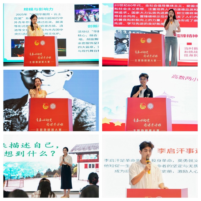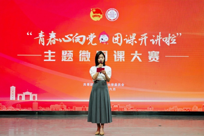 比赛现场,15名团干部、青年教师和35名大学生围绕新时代党的青年工作、新时代共青团工作理论体系等内容,以案例讲解、视频展示等多种形式生动呈现富有“青年味”“时代味”“真理味”的微团课。