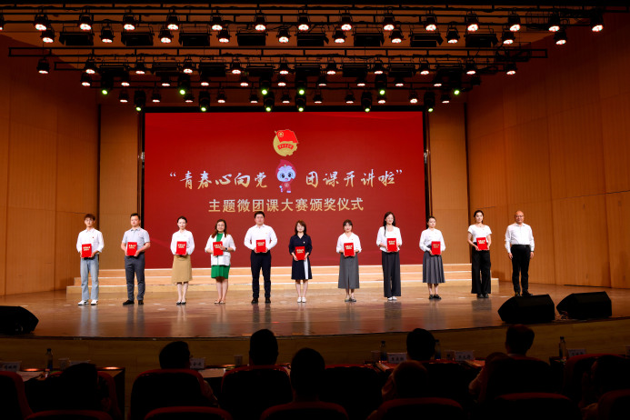 张明军为微党课和微团课大赛获奖选手颁发荣誉证书;