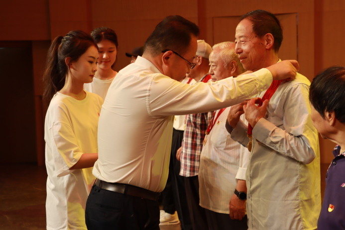焦爱胜宣读《关于颁发“光荣在党50年”纪念章的决定》;