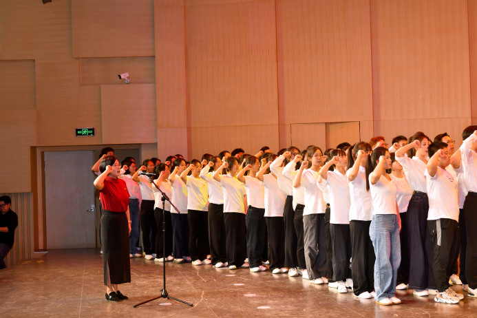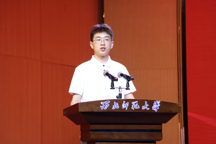 新发展党员代表、文学院本科生李润泽表示,将始终以优秀党员的标准鞭策自己,把个人成长融入时代发展的洪流,不忘来时路,以初心为锚,在党史长卷中镌刻信仰印记;不负今朝责,以学识为炬,用笔墨传承红色基因;不愧明日期,以讲台为帆,用知识点燃理想火种的微光,在强国建设、民族复兴的实践中绽放绚丽之花!