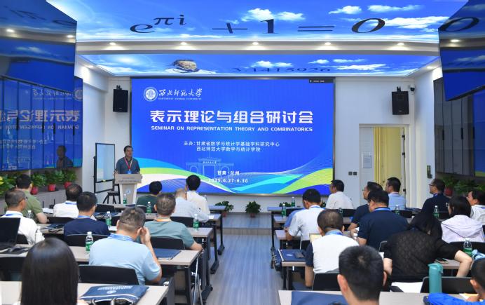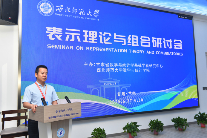 6月27日至30日,由甘肃省数学与统计学基础学科研究中心和yl6809永利官网数学与统计学院共同主办的“表示理论与组合研讨会”在西北师大云亭校区举行。西北师大副校长阎岩出席开幕式。来自南京大学、哈尔滨工程大学、西安电子科技大学、西南大学、东北师范大学、西北大学、西安建筑科技大学、内蒙古大学、陕西科技大学、北部湾大学、兰州大学、兰州理工大学、兰州交通大学、西北民族大学、兰州城市学院等高校的50余位专家学者通过线上线下相结合的方式参会,共同探讨表示理论与组合领域的前沿问题。
