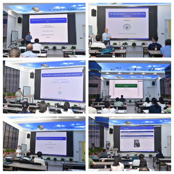 会议期间,南京大学刘公祥教授、哈尔滨工程大学樊赵兵教授、西安电子科技大学杨丹丹教授、西南大学喻厚义教授、西南大学吕恒教授、东北师范大学扶先辉教授、西北大学任苗苗教授、西北大学邵勇教授、西安建筑科技大学宫春梅教授、陕西科技大学梁星亮副教授、北部湾大学苏华东教授、内蒙古大学赵金星副教授、兰州大学高兴教授、兰州大学张文婷教授、兰州理工大学杨琳副教授等20余位知名学者围绕“表示理论与组合的代数前沿课题”作学术报告并进行交流研讨。