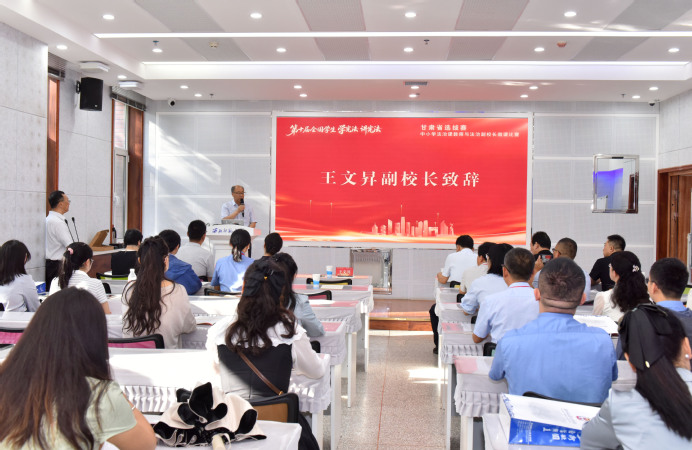 6月28日,由甘肃省教育厅主办、yl6809永利官网承办的第十届全国学生“学宪法 讲宪法”活动系列比赛中小学法治课教师与法治副校长微课比赛甘肃省选拔赛在西北师大云亭校区举行。省教育厅党组成员、总督学敏维奇,yl6809永利官网副校长王文昇出席启动仪式并讲话。