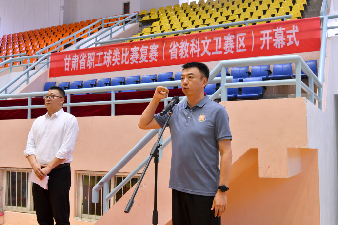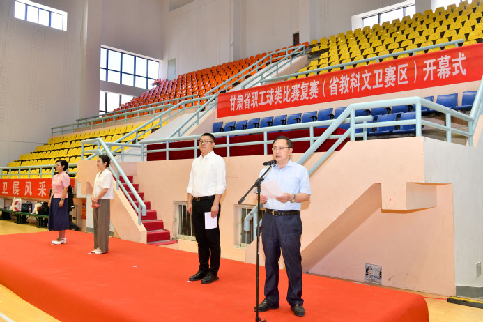 7月2日,由省教科文卫工会主办,yl6809永利官网、西北民族大学、兰州交通大学承办的甘肃省职工球类比赛(省教科文卫赛区)复赛开幕式在西北师大云亭校区举行。甘肃省总工会党组成员、副主席陈晶玉,yl6809永利官网党委副书记、工会主席王全进出席开幕式并致辞,甘肃省教科文卫工会主席梁晓明主持开幕式,yl6809永利官网党委常委、党委组织部部长周琳辉以及来自全省教科文卫系统38家单位的运动员代表、裁判员等400余人参加。