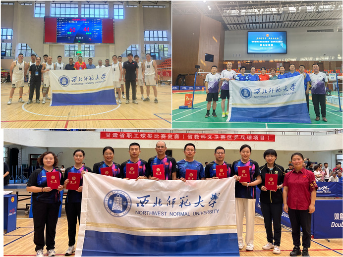 西北师大共派出31名教职工分别参加篮球、乒乓球、羽毛球三个组别的比赛。其中篮球代表队获一等奖,乒乓球代表队获女子团体一等奖、男子团体一等奖、混双二等奖、女子单打三等奖,羽毛球代表队获混合团体一等奖、男子单打一等奖、女子双打一等奖。以上获一等奖的项目和个人将代表省教科文卫工会参加全省职工球类比赛决赛。