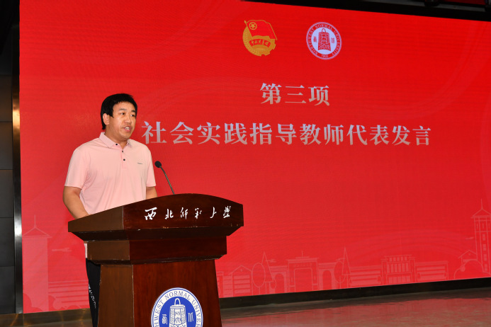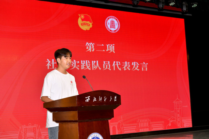 社会实践队员代表祁占海在发言中表示,西师青年必将以“知术欲圆,行旨须直”的校训精神为指引,扎根基层、服务社会,在实践中锤炼本领、严守纪律、精诚协作,将理论知识进行转化和拓展,在实践中检验“真学问”,在服务中练就“真本领”。