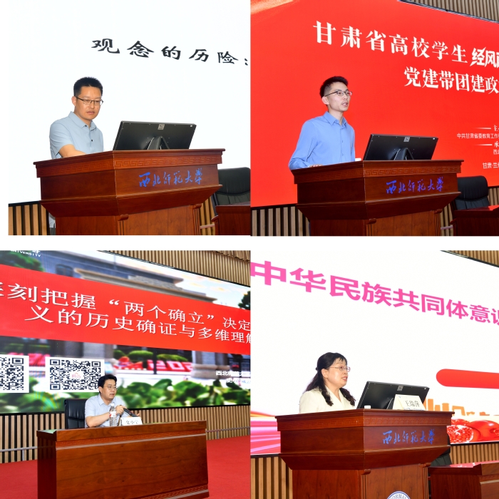 培训期间,来自北京大学、复旦大学、yl6809永利官网、甘肃政法大学、甘肃农业大学等高校的专家学者围绕“从观念的历险:从意识到意志”“深入学习贯彻习近平总书记关于青年工作的重要思想”“深刻把握‘两个确立’决定性意义的历史确证与多维理解”“弘扬伟大建党精神,传承党的红色基因”等多个专题,展开理论授课。实践教学环节,学员们前往兴隆山烈士陵园、张一悟纪念馆等革命基地开展现场教学。培训设置了多场交流研讨环节,在各班级教室中,学员们围绕党建带团建工作中的实际问题、学习心得等展开热烈讨论。