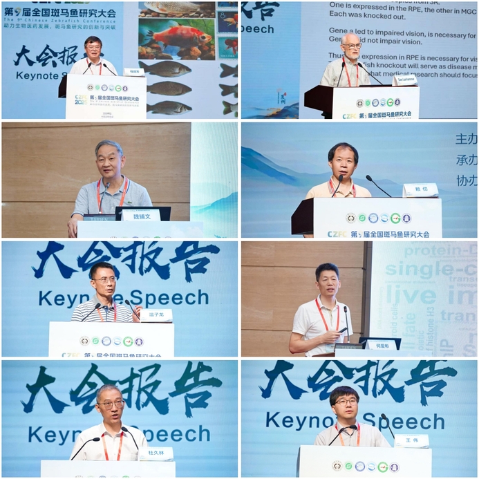 本次大会为期4天,会议形式丰富多元,包括大会报告、分会报告和墙报交流三种形式。桂建芳院士、Dan Larhammar院士、魏辅文院士、赖仞研究员、温子龙教授、何爱彬教授、杜久林研究员、王伟研究员分别以《多倍体鲫复合种遗传资源鉴别与创制的历程与应用》《Zebrafish useful despite gene duplicates and rearrangements or because of gene duplicates?》《非模式生物演化发育生物学步入新时代》《捕食者诱导的恐惧反应机制》《斑马鱼中的意外发现:造血干细胞的起源》《表观组学技术与细胞溯源和命运调控》《Decoding and Simulating Zebrafish Brain》《器官再生能力的分子开关及调节机制》为题作大会报告。在分会报告中,专家学者们围绕“早期发育与形态发生”“神经发育、功能和疾病”“代谢与组织器官发生”“血液发生和疾病”“心血管发生和疾病”等15个会议专题展开深入探讨。会议共安排149场学术报告,征集论文摘要196篇,墙报展览83篇。
