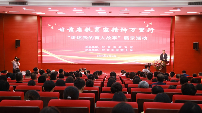在第41个教师节来临之际,由省教育厅主办的甘肃省教育家精神万里行“讲述我的育人故事”展示活动于9月5日在甘肃中医药大学举行。yl6809永利官网党委副书记王全进出席活动。马克思主义学院教师马乔恩作为教师代表,在现场分享了自己以教育家精神为引领,投身教育强国实践、躬耕教坛的经历。学校同步设立分会场,组织师生代表100余人观看了活动直播。