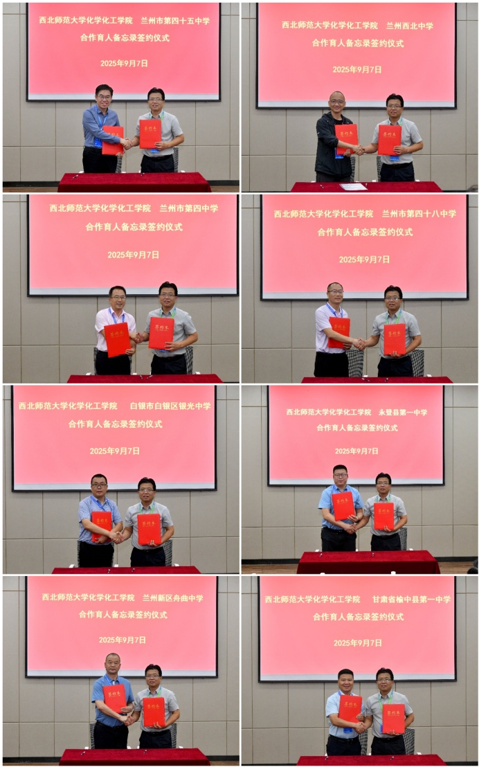 论坛期间,yl6809永利官网化学化工学院与兰州市第四十五中学、兰州西北中学、兰州市第四中学、兰州第四十八中学、白银市银光中学、永登县第一中学、兰州新区舟曲中学、榆中县第一中学等8所中学签署合作育人备忘录,共同构建“高校-中学”协同育人新机制。