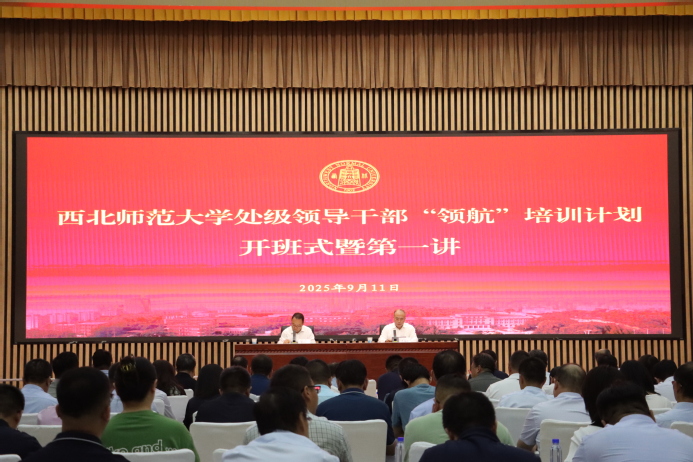 9月11日下午,西北师大举办第一期处级领导干部“领航”培训计划开班式,党委书记贾宁作专题辅导报告,校长王占仁主持开班式,全体在家校领导出席。学校各单位党政负责人、第一期处级干部“领航”计划及年轻干部“火炬”培育计划全体学员参加。