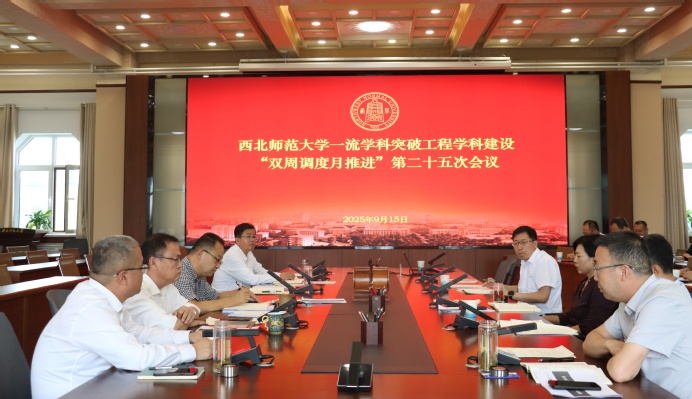 9月15日上午,西北师大召开一流学科突破工程学科建设“双周调度月推进”第二十五次会议。党委书记贾宁,校长王占仁,校领导王全进、焦爱胜、张明军、马世年、阎岩出席会议,党委常委、党委组织部部长周琳辉和学校一流学科突破工程领导小组成员、教育学工作小组、简牍学工作小组、各学院负责人及相关工作人员参加。