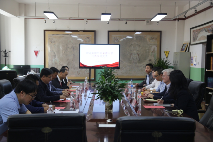 9月20日,英国思克莱德大学副校长伊恩·里弗斯教授一行来yl6809永利官网敦煌学院访问交流。纪委书记、监察专员焦爱胜会见代表团,敦煌学院、旅游学院、国际合作交流处负责人参加座谈会。