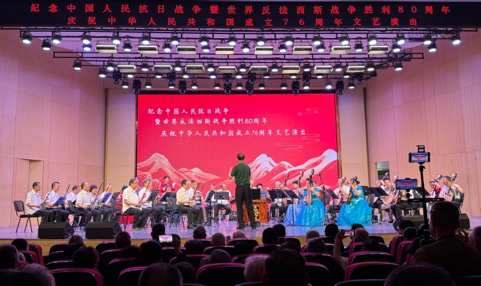 演出以纪念中国人民抗日战争暨世界反法西斯战争胜利80周年、庆祝新中国成立76周年为主题,离退休教师们以饱满的热情和良好的技艺,通过合唱、独唱、戏曲、舞蹈、器乐演奏等多种艺术形式,生动再现了中华民族艰苦卓绝的抗战历程,讴歌了新中国成立76年来取得的辉煌成就,彰显了中华民族自立于世界民族之林的精神风貌。