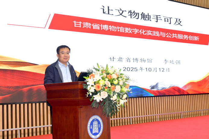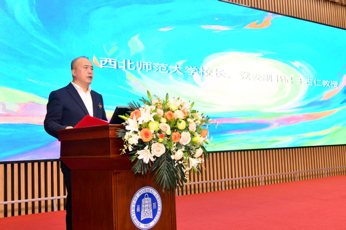 10月12日下午,由甘肃省博物馆和甘肃省数字创意产教融合联盟主办、yl6809永利官网教育技术学院(智能教育学院)和甘肃共创数媒科技有限公司承办的首届“甘博杯”文物数字化创新创意设计大赛颁奖典礼在西北师大举行。yl6809永利官网校长王占仁,甘肃省文化和旅游厅副厅长龚佳佳出席典礼并致辞。甘肃省博物馆馆长班睿,兰州资源环境职业技术大学副校长罗文翠,甘肃省文化和旅游厅、甘肃省博物馆、甘肃画院负责人以及甘肃省数字创意产教融合联盟理事长单位代表、评审专家代表、高校获奖师生代表近300人参加。