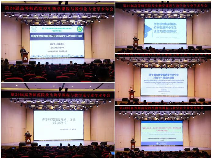 本次年会下设主旨报告、分论坛讨论等环节。在主旨报告阶段,兰州大学生命科学学院侯岁稳教授以《细胞生物学课程建设及西部拔尖人才培养之探索》为题作大会特邀报告;南京师范大学解凯彬教授、杭州师范大学任山章副教授、东北师范大学靳冬雪博士、中国科学院大学佘建云博士分别以《跨学科实践的内涵、价值及实施路径》《在生物学领域利用科幻电影培养中学生创造力的有效性研究》《基于概念教学策略提升高中生对跨学科概念的理解》《情境化与动态VS陈述性与静态形式的 PCK 评估——教师测试反应与表现的差异研究》为题作主旨报告。